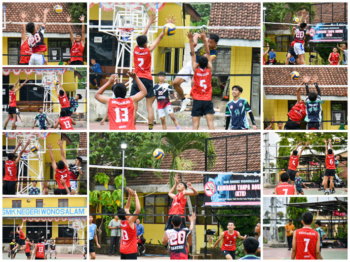 Pertandingan yang dimainkan dalam tiga set ini berlangsung sengit dan penuh dinamika. Pada set pertama, Tim Bola Voli SMK Negeri Wonosalam harus mengakui keunggulan lawan dengan skor akhir 19 - 25. Namun, kekalahan di set pertama tidak menyurutkan semangat juang para pemain. Berbekal evaluasi cepat dan motivasi tinggi, Tim Bola Voli SMK Negeri Wonosalam berhasil bangkit di set kedua. Dengan penampilan yang lebih solid dan serangan yang efektif, mereka sukses merebut set kedua dengan skor 25 - 18.