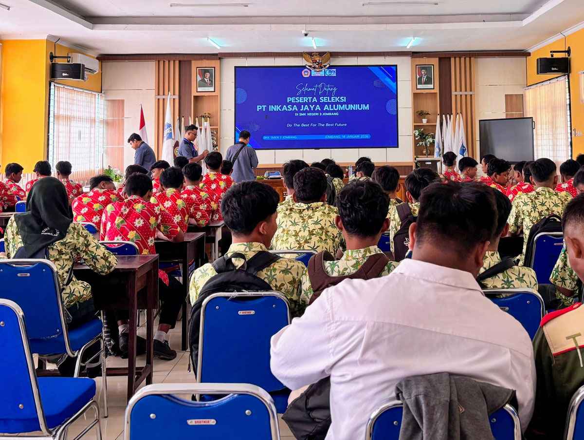 Jombang – Semangat menjemput masa depan terpancar jelas dari raut wajah para peserta didik kelas XII SMK Negeri Wonosalam. Pada Rabu (14/01/2026), Tim Bursa Kerja Khusus (BKK) SMK Negeri Wonosalam mendampingi puluhan peserta didik pilihan untuk mengikuti proses rekrutmen tenaga kerja dari perusahaan ternama, PT Inkasa Jaya Alumunium (Inkalum) Pasuruan.